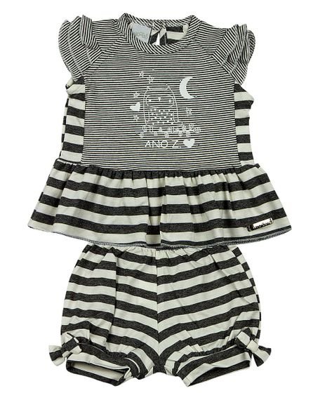 Conjunto Bebê Viscolycra Listrada Capri e Catalina Corujinha – Mescla M (Entregue por Ano Zero)