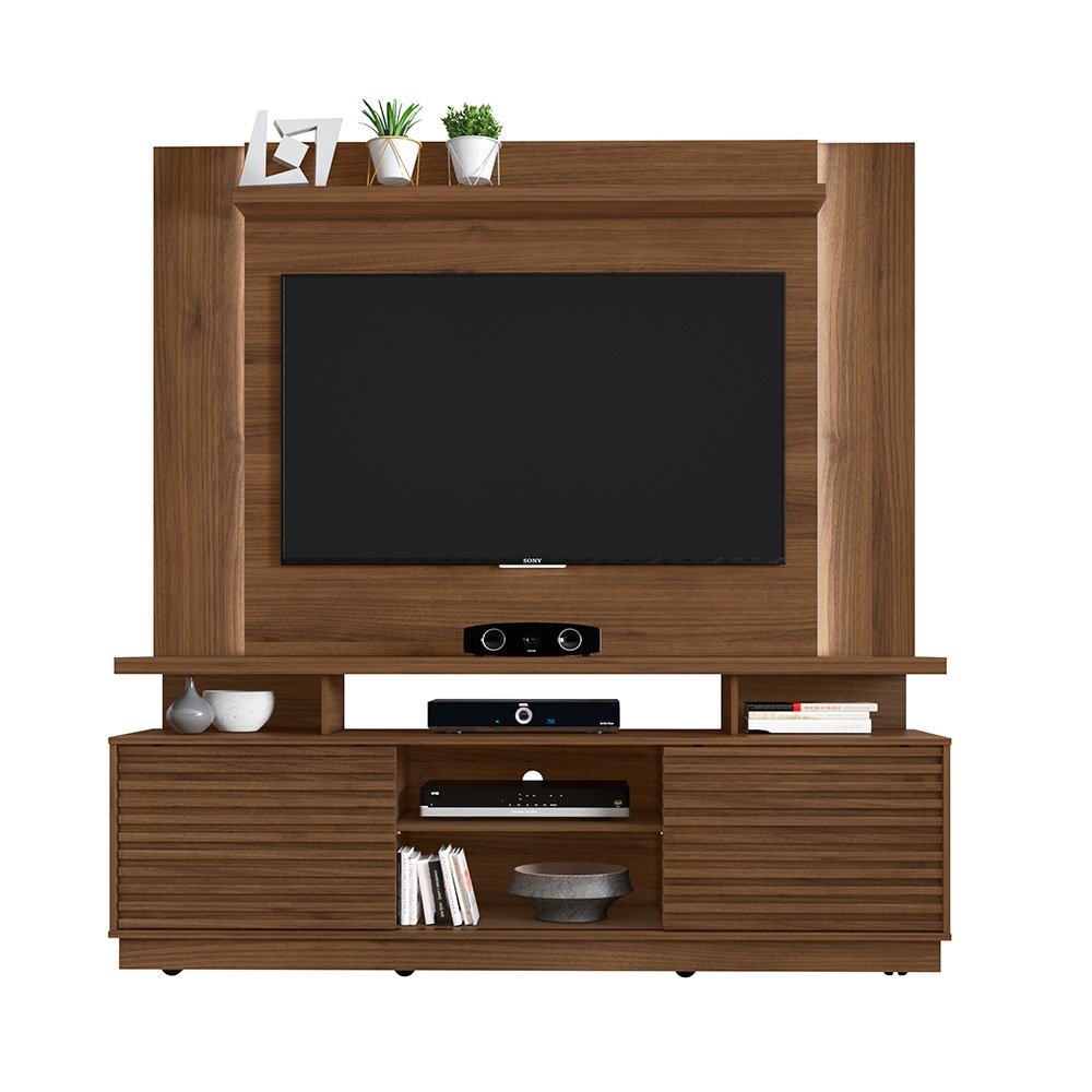 Conjunto Rack Bancada Blumenau e Painel Aurora 60″ Com LED Nogueira Linea Brasil (Entregue por Mega Mamute)