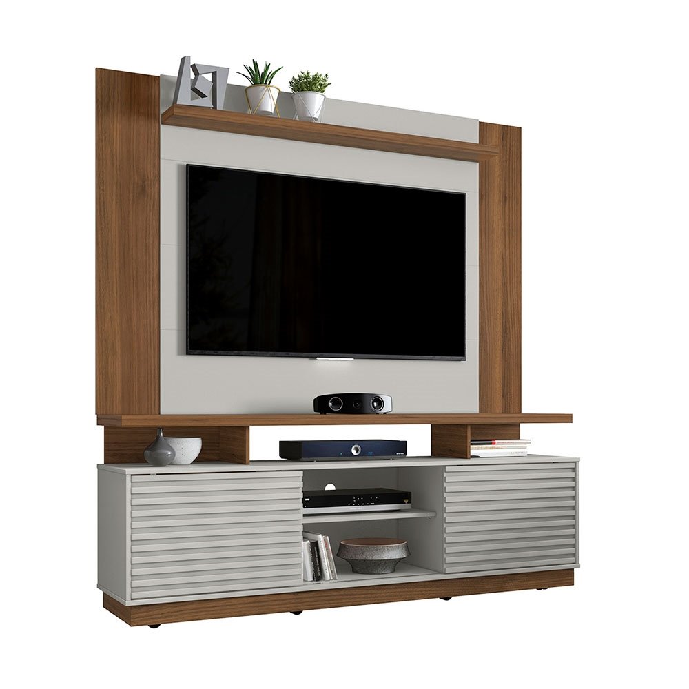 Conjunto Rack Bancada Blumenau e Painel Aurora 60″ Off White/Nogueira Linea Brasil (Entregue por Mega Mamute)