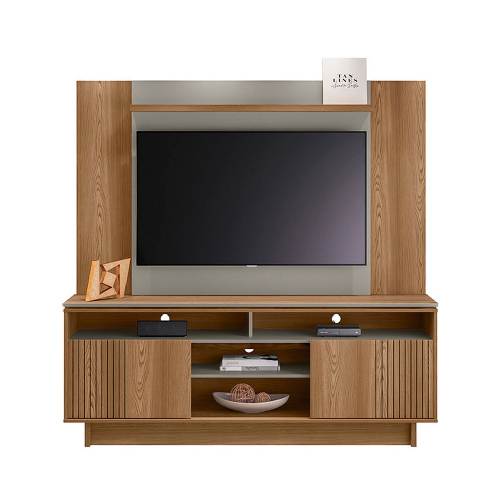 Conjunto Rack Bancada Salinas e Painel Aurora 60″ Amendoa/Titanio Linea Brasil (Entregue por Mega Mamute)