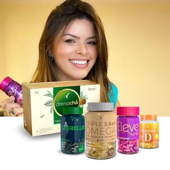 Kit Tamiris Rodrigues Eleve Hair 30 – Clorella 60 – Triple Ômega 60 – Vitamina D 30 – Drenachá 90 sachês (Entregue por Eleve Life)