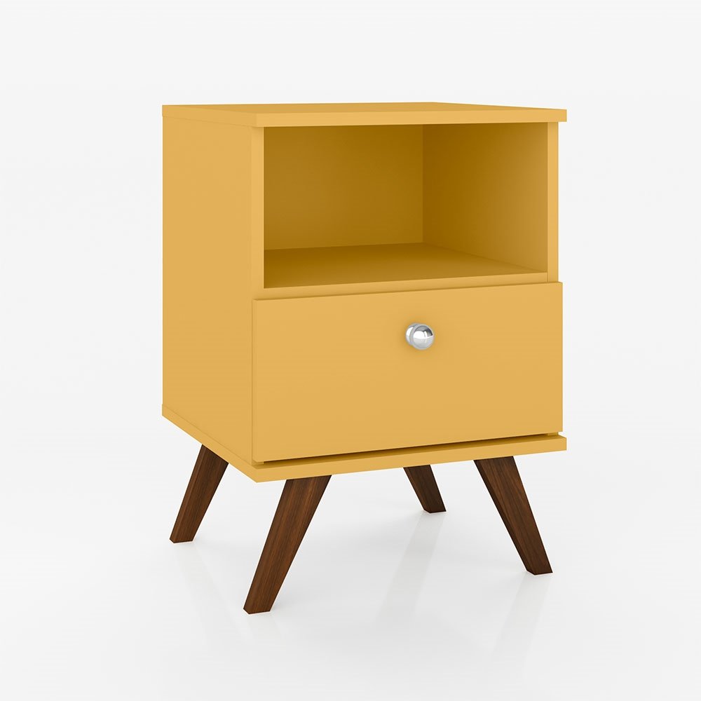 Mesa de Cabeceira 01 Gaveta 01 Nicho Retrô Amarelo Movelbento (Entregue por Mega Mamute)