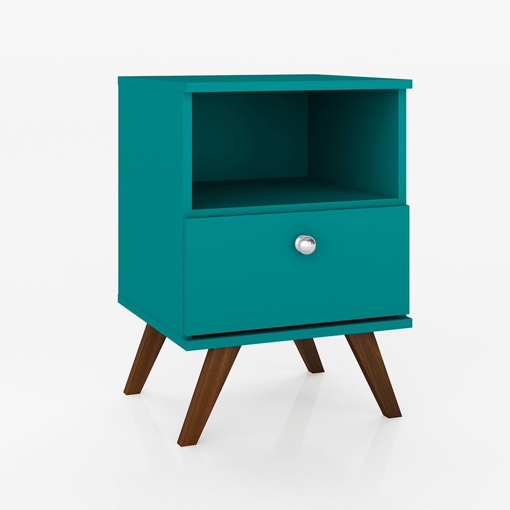 Mesa de Cabeceira 01 Gaveta 01 Nicho Retrô Azul Turquesa Movelbento (Entregue por Mega Mamute)