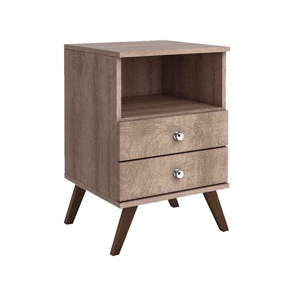 Mesa de Cabeceira 02 Gavetas 01 Nicho Retrô Rústico Movelbento (Entregue por Mega Mamute)