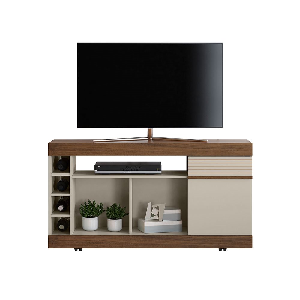 Rack Bancada Rio TV até 55″ Off White/Nogueira Linea Brasil (Entregue por Mega Mamute)