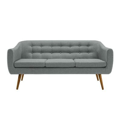 Sofá Mimo Linho com Botonê Cinza Base Palito Castanho