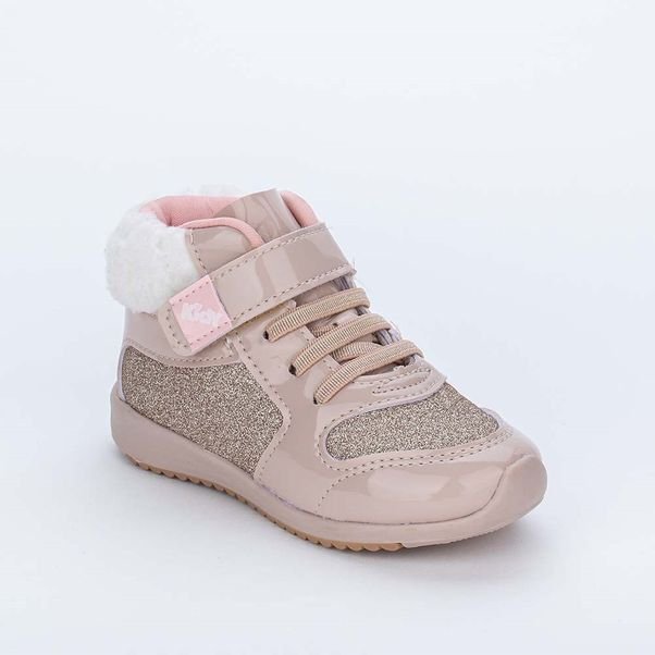 Tênis Botinha de Bebê Menina Kidy Colors Bege com Pelinho (Entregue por Oscar Calçados)
